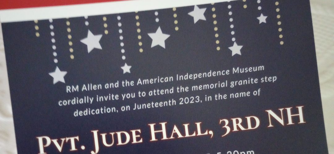 250 years later, Jude Hall is finally honored and celebrated on a local, state and national level. Hooray! Or as he might say, Huzzah!